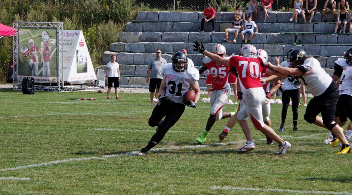 Im letzten Saisonspiel traten die Panthers vergangenen Sonntag in Fürstenfeldbruck beim Meister der Regionalliga Süd, den Fursty Razorbacks an. Den Gastgebern gelang der perfekte Start ins Spiel und sie konnten durch einen Touchdown im ersten Spielzug der Partie punkten. Den Würzburgern, die erheblich durch Ausfälle geschwächt antraten, gelang durch einen Touchdown Pass von Trenton Jones auf Noah Bomba, der seinen ersten Touchdown im Herren-Bereich erzielen konnte, die direkte Antwort. Der Extrapunkt misslang und so stand es 6:7 aus Würzburger Sicht. Danach konnten die Razorbacks Drive um Drive Punkte aufs Scoreboard bringen, während die Panthers Offense zwar den Ball teilweise stark durch Running Back Lorenz Gradl über das Feld bewegen konnte, sich allerdings durch zu viele kleine Fehler immer wieder selbst schadete und so keine Punkte mehr erzielen konnte. Am Ende steht ein verdienter 49:06 Sieg der Razorbacks, die nun um den Aufstieg in die GFL 2 spielen. Für das junge Panthers Team war es eine Lehrstunde die sicher helfen wird im nächsten Jahr eine bessere Platzierung zu erreichen. GO PANTHERS!