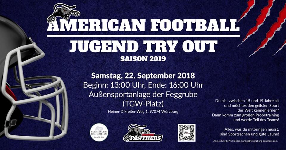 Die Würzburg Panthers laden zu einem Tryout für die U19 Mannschaft des Vereins.
